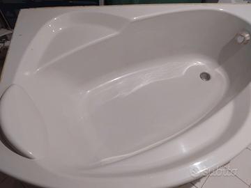 Vasca da bagno a elle 150 cm per 90cm in vetroresina,compresa di piletta,senza frontale di conseguenza ideale rivestimento a piacere!!