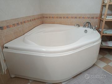 Vendo vasca da bagno cm.140x140 usata pochissimo, COMPLETA DI RUBINETTERIA, in ottime condizioni. La fascia laterale che copre la struttura ha una piccola fessura dovuta ad un urto…nulla di che, è solo un fatto estetico (vedi foto).