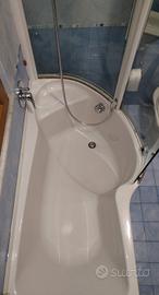 Vendesi vasca da bagno combinata con doccia in acrilico bianco, sagomata per offrire un comodo spazio doccia. Il design moderno permette di avere sia la comodità della vasca che la praticità di un box doccia in cristallo temperato spazioso in un unico elemento.
