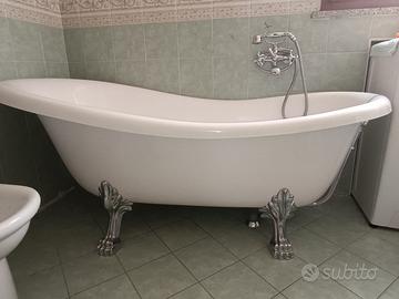 Vendo vasca da bagno con piedini cromati a zampa di leone. Usata poco e in ottime condizioni. Colore bianco , misura 170x75. Non ci sono crepe, completa di scarico e gruppo(acqua calda e fredda). Vendita urgente Prezzo trattabile