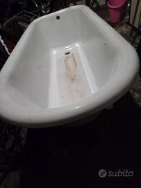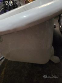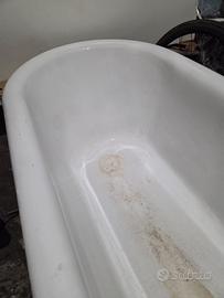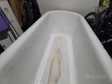 Vasca con piedini, forma elegante, cm. 166 x 70, altezza cm. 55. Non l'ho fatta smaltare lasciando così a chi la prende di scegliere il colore preferito. Purtroppo le foto sono pessime