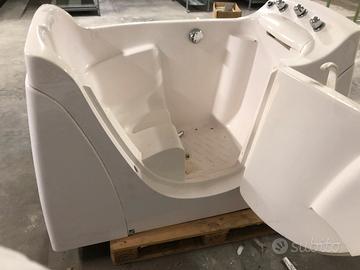 Vendo vasca da bagno con porta e seduta molto robusta ideale per anziani o persone con disabilità completa di rubinetteria con miscelatore termostatico e doccetta a bordo vasca.