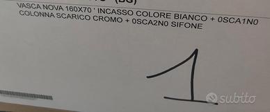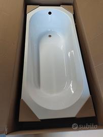 Vasca da bagno da incasso Hafro rimasta da ristrutturazione, mai installata, bianca con sifone e colonna di scarico cromo.