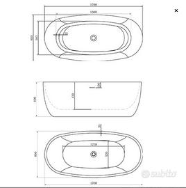 Vasca da bagno freestanding ( libera istallazione) 170 cm in acrilico bianco lucido.