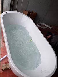 Vasca Da bagno freestanding con idromassaggio e led. NUOVA. Mai usata e solo testata. È arrivata con la calotta danneggiata su lato corto (vedi ultime 3 immagini). È stata rigenerata e testato il corretto funzionamento. Non si nota particolarmente e se viene messa accostata a una parete, sarà proprio invisibile. Il prezzo è quasi 1/3 del valore e di quello di vendita. Faccio visionare volentieri a chi è realmente interessato. NON spedisco. No perditempo