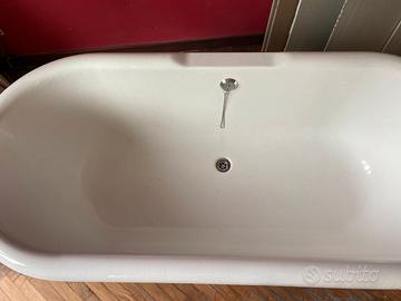 Vasca da bagno freestanding in ghisa stile classico finitura con smalto bianco e piedini. Completa di piletta di scarico cromata. Ritiro a carico dell'acquirente a Milano, zona San Siro. Terzo piano con ascensore.