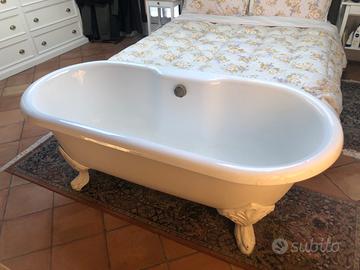 Vasca da bagno freestanding in ghisa stile classico finitura con smalto bianco e piedini smontabili. Completo di gruppo rubinetto, doccino e piletta di scarico colore bronzo. Al prezzo vanno aggiunte le spese di spedizione se richiesta.