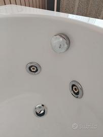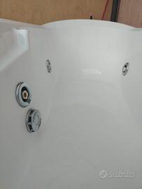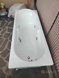 Vendo vasca idromassaggio rettangolare in acrilico bianco, misura 170x70 cm. Completa di impianto idromassaggio con jets multipli cromati su pareti e fondo, pompa funzionante, scarico click-clack cromato e pannello laterale. La vasca è stata smontata e sostituita per fare spazio a una doccia — non per guasti o problemi.