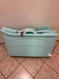 Vendo vasca da bagno portatile e pieghevole marca IROO, colore Blu, ideale sia per bambini che per adulti. Soluzione perfetta per chi ha solo la doccia in casa o per chi ha poco spazio. Caratteristiche principali: • Design Salvaspazio: Una volta piegata occupa solo 10 cm di spessore. Si ripone ovunque (dietro una porta o sotto il letto). • Dimensioni: 86 x 50 x 52 cm (ampia e confortevole). • Sicurezza: Fondo con sgabello antiscivolo integrato. • Materiale: Plastica PP di alta qualità, sicura e resistente. • Facile da svuotare: Dotata di foro di scarico laterale e tubo flessibile da 1,2 metri incluso. • Accessori inclusi: Cuscino cervicale per il massimo relax e cestino portaoggetti. La vasca è molto stabile e robusta (pesa circa 5kg da vuota). Ideale anche da usare in giardino o in viaggio.