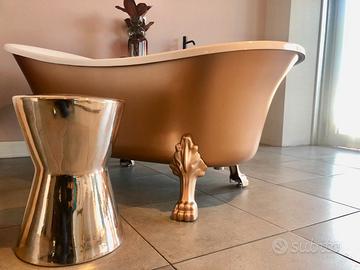 Vasca da bagno centro stanza in stile Retro' con piedini in metallo cromati o bianchi verniciati.