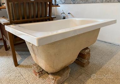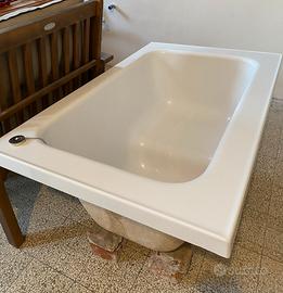 Vasca da bagno da incasso in vetroresina con seduta, in ottime condizioni. È lunga 107 cm e larga 69 cm, all’interno ha una profondità di circa 45 cm nel punto più profondo e di 30 cm circa dove c’è la seduta. Ha i bordi molto larghi, adatta a persone anziane che hanno bisogno di appoggiarsi o sedersi per poter entrare.