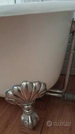 Vendo come nuova vasca in ghisa smaltata bianca senza alcun segno d'usura marca Devon e Devon con inserti in color argento e rubinetteria integrata a muro del valore commerciale di oltre 4.000€.. dimensioni cm.153x77 di larghezza.