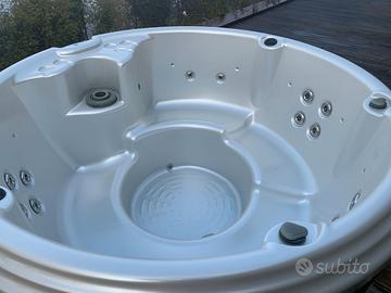 Minipiscina HAFRO, 7 anni, unico proprietario, perfettamente funzionante, 1000 litri di acqua, 6 postazioni ergonomiche, sistema di filtraggio a cartuccia, cromoterapia, riscaldabile, casse acustiche incorporate con sistema bluetooth, copertura invernale.