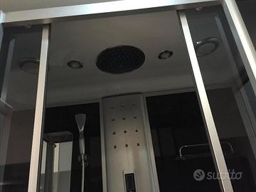 I comandi digitali, la chiusura delle porte magnetica, le rifiniture in alluminio satinato, il vetro temperato ed oscurato da 5 mm anti infortunio, il soffione superiore illuminato, il massaggio plantare, la radio FM sono alcune delle spettacolari funzionalità che contraddistinguono questa cabina.
