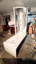 Vendo vasca idromassaggio teuco, causa cambio casa e nella nuova non ci sta. Presenta qualche segno di usura ma perfettamente funzionante perché usata principalmente come doccia tradizionale. Funzione idromassaggio vasca, idromassaggio doccia, idromassaggio e skrab piedi con tavoletta estraibile affianco al seggiolino.