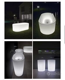Vasca e 2 lavabi free-standing polietilene retroilluminati OiO by Antoniolupi.