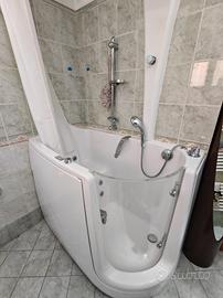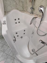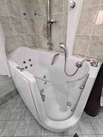 Vasca in vetroresina robusta con comoda apertura laterale per un facile ingresso specialmente per persone anziane o con problemi di mobilità. Completa di seduta interna e IDROMASSAGGIO per un bagno rilassante e massaggiante per le gambe. La vasca è naturalmente usata ma in OTTIME CONDIZIONI e funzionante, ha solo bisogno di togliere il silicone nella parte dietro visto che era appoggiata alla parete e che comunque bisogna rimettere per isolare la vasca dalla parete.