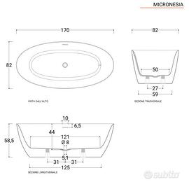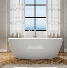La vasca da bagno è realizzata in acrilico, materiale liscio e piacevole a contatto con la pelle. Leggero e antiscivolo l'acrilico sanitario resiste nel tempo a graffi e urti ed è sempre più utilizzato anche per le vasche da bagno. Grazie al suo colore bianco può essere accostato a qualsiasi tipo di sanitario. Proprio perchè si tratta di un materiale non poroso, è di facile manutenzione: per pulire una vasca in materiale acrilico basta un panno umido con pochissimo detergente neutro e l’acqua per sciacquare.