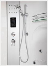 Vendo splendida vasca multifunzione, usata pochissime volte, in condizioni eccellenti. Dimensioni 150x150. ✅ 2 sedute con colonne idro ✅ Bagno turco ✅ Ozonoterapia ✅ Cromoterapia ✅ Radio + ricevitore telefonico ✅ Display touch screen ✅ Soffione centrale effetto pioggia ✅ Doccetta laterale estraibile ✅ Struttura in resina ABS con telaio robusto e profili in alluminio ✅ Appoggia flaconi ✅ Massaggio plantare ✅ Idromassaggio a 16 getti ✅ Vetro temperato antiframmentazione 5mm