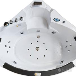 Vasca angolare con idromassaggio per due persone, facile da montare e da usare. Per un piacevole relax con la cromoterapia.
