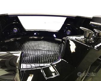 “Barracuda” vasca idromassaggio angolare nera con vetro frontale, molto scenografico. Molto comoda e spaziosa, con due poggiatesta, consente di fare il bagno idromassaggio per due persone. Cromoterapia, radio, full optional.