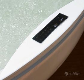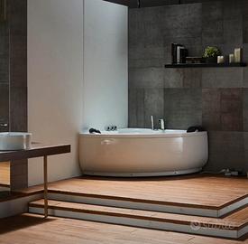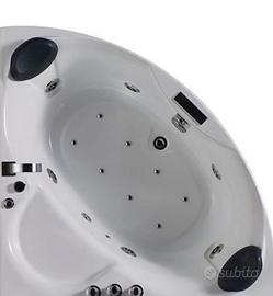 Vendo Vasca idromassaggio NUOVA da interno 2 posti Sardegna è un modello di vasca angolare che combina il suo design minimalista con la sua tecnologia funzionale donando al tuo bagno un tocco di eleganza. Caratteristiche tecniche 130cm x 130cm x 60cm - 2 POSTI Peso: kg 54 Peso/mq con acqua: kg 145 (capienza d’acqua 180 litri) Getti idromassaggio: 6 getti ad acqua, 8 getti ad aria Regolatore intensità idromassaggio Sistema di disinfezione con Ozonizzatore Cromoterapia: 1 faro multicolor Display digitale con Radio FM con connessione Bluetooth Accessori inclusi Cuscini poggiatesta Rubinetteria con doccino estraibile in acciaio cromato Sifone con tubo di scarico da 40mm Raccordi acqua calda e fredda da 1/2 pollice