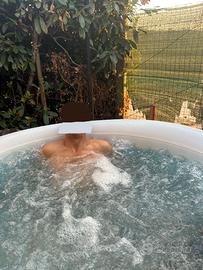 vasca idromassaggio lay z spa perfettamente funzionante come si vede dalla foto è stata riparata e non ha nessun problema è stata usata questa estate fino alla metà di settembre per chi fosse interessato vendo anche il tappeto per 25 euro, quello che si vede in foto per evitare forature quando viene riempita