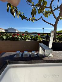 Vendo vasca idromassaggio Jacuzzi originale modello ID77 – Made in Italy (Jacuzzi Europe). Pagata oltre 13.000 €. Caratteristiche: •13 bocchette idromassaggio •2 posti sdraiati contrapposti •pompa originale Jacuzzi •centralina elettronica •rubinetteria integrata •pannello comandi laterale •struttura autoportante da esterno/terrazzo La vasca è perfettamente funzionante in tutte le sue parti. Necessita solo di: •pulizia generale •riverniciatura estetica della cornice in legno Per il resto pronta all’utilizzo. Ideale per terrazzo, giardino, veranda o uso interno. Prezzo: 1.600 € trattabili Ritiro a carico dell’acquirente. ⸻ 📦 Peso e trasporto (informazione utile per gli acquirenti) Modello di questa categoria: •peso a vuoto: circa 160–220 kg •trasporto: servono 3 persone •passa da porte standard se inclinata •entra su furgone tipo Ducato