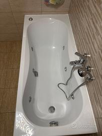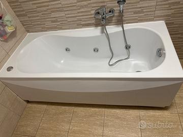 Vasca idromassaggio 160- 70 cm, 6 bocchette, in acrilico bianco, forma rettangolare, per installazione a parete, Reversibile: si può installare a destra o a sinistra.