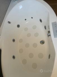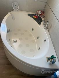 Stupenda vasca idromassaggio Titan usata pochissimo funzionante in tutto.. le misure le trovate nellultima foto. La vendo per inutilizzo . La societa Titan ha fallito e la vasca ha delle piccole perdite di gocce di acqua dai collettori di uscita dove si miscela acqua e aria perfettamente riparabili con un po di colla per pvc.. la svendo per questo.. pagata 1200 euro la vendo a 240 euro… ritiro in zona. Prove di funzionamento dal vivo ..