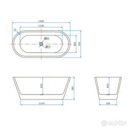 Vendo Vasca da Bagno a Isola 150x70x58 cm Vasca da Bagno Freestanding in Acrilico Bianco Ovale, per errato ordine. Ritiro a mano comodo con furgon. Non spedisco