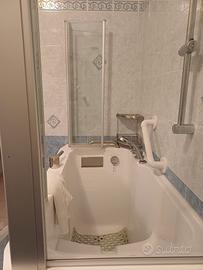 La vasca ha lo sportello, il.vetro e la panca x sedersi,praticamente nuova