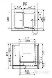 - Misure: 98 x 68 H 92 cm; apertura: 60 cm