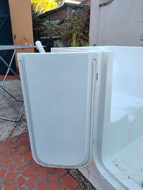 Vendo vasca con sportello completa di doccino miscelatore rubinetteria e scarico. Dimensioni 115x68x90 Prezzo da nuovo € 2.500. Ritiro a carico dell'acquirente Visionabile ad Ancona.