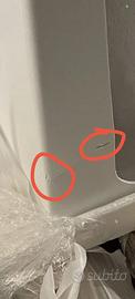 Vendo vasca ad angolo colore bianco opaco mai utilizzata. Come riportato in due foto, la vasca presenta due scheggiature. Una scheggiatura rimane nella parte coperta dal muro quindi non visibile, la piu piccola invece sporge leggermente come si vede da immagine.
