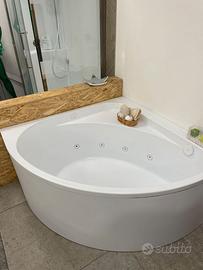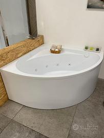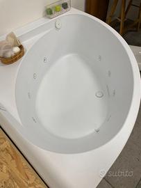 La Divina C di NOVELLINI, è la vasca angolare semicircolare, dalle dimensioni comode, 140x140x63h, per il proprio relax. E' Pannellata bianco morbido opaco, con una finitura anti graffio. Questa è la versione Whirlpool con 8 getti, per creare un' atmosfera di benessere rigenerante, con accensione touch. La colonna di scarico è dotata di piletta click clack. Trasporto con corriere, da concordare.