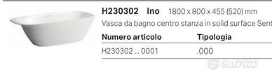 Vendo vasca in solid surface Laufen Ino. Prodotto nuovo da esposizione, misure nelle foto allegate. Non spedisco, ritiro sul posto ad opera dell’acquirente.