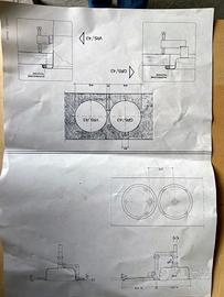 Vasche per cucina rotonde da incasso in Ottone pieno complete di pilette, attacchi e schema installazione.