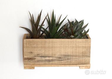 Sono vasetti di legno recuperato dalle cassette della frutta anni 80, ideali come porta oggetti o vasi per piantine.