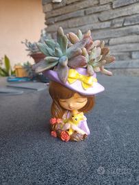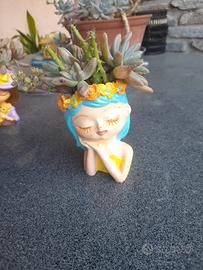 Vasetti materiale ceramico dipinti a mano a forma di testa di ragazza con cavità per piantine o altro.ognuno diverso dall'altro. qui confezionati con piantine grasse. Euro 12 l'uno. 5 vasetti per 50 euro. Consegna a mano.