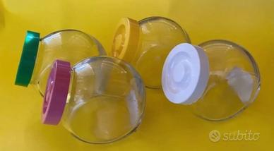 Vendo vasetti in vetro per alimenti con tappo in plastica colorato misura cm 8 in entrambe le posizioni 4 vasetti a 3 euro.