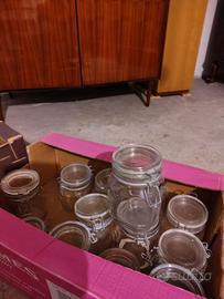 Vendo lotto di vasetti in vetro Bormioli ideali per conserve (pomodoro, marmellate) o per biscotti e alimenti secchi. Tutti in ottime condizioni. Possibile l'acquisto di quanti barattoli si vogliono, non per forza del lotto completo. Ogni barattolo è venduto a 50 centesimi. Composizione del lotto: - 82 vasetti medi (misura 18, indicata sotto al vaso) - 10 vasetti piccoli - 10 vasetti grandi con guarnizione (chiusura ermetica) - 15 vasetti grandi - Compresi i coperchi