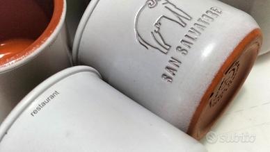 N.8 vasetti in terracotta smaltata di colore bianco per uso alimentare e usi diversi
