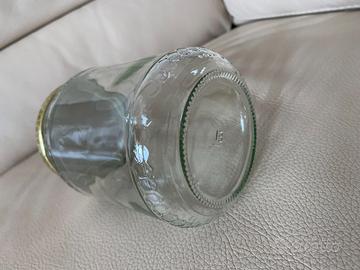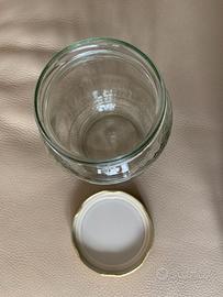 40 Vasetti per miele in vetro vuoti da 1000 gr. con tappo litografato colore oro ad alveare. Dimensioni barattolo: diametro cm. 10; altezza cm. 13,5. Si possono vendere anche singolarmente a 0,5 euro l'uno.