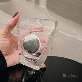 Vasetto BRUMAL in cristallo di murano con decoro tondo in argento 925 spessore 3mm NUOVO base inferiore 5cm Lato superiore 8cm H 10