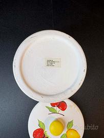 Vasetto in coccio bianco dipinto a mano anni 90, nuovo diametro 11 cm alto 10,5 cm