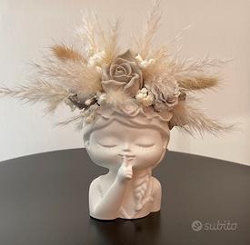 Vasetto alto 14 cm conpreso di fiori realizzato con gesso ceramico .Arricchito con fiori pampas in tonalita neutr , che la eendono perfetta per arredare ambienti moderni o shabby chic