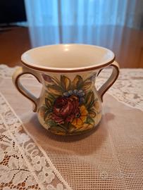 Vasetto in ceramica Castelli dipinto a mano con decori floreali.