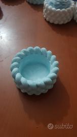 vasetto fatto in gesso con colore celeste dipinto. Ottimo per creazioni o come bomboniere. Produzione propria