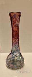 Vasetto in vetro portafiori, colorato; altezza 24 cm, largo alla base 9 cm.